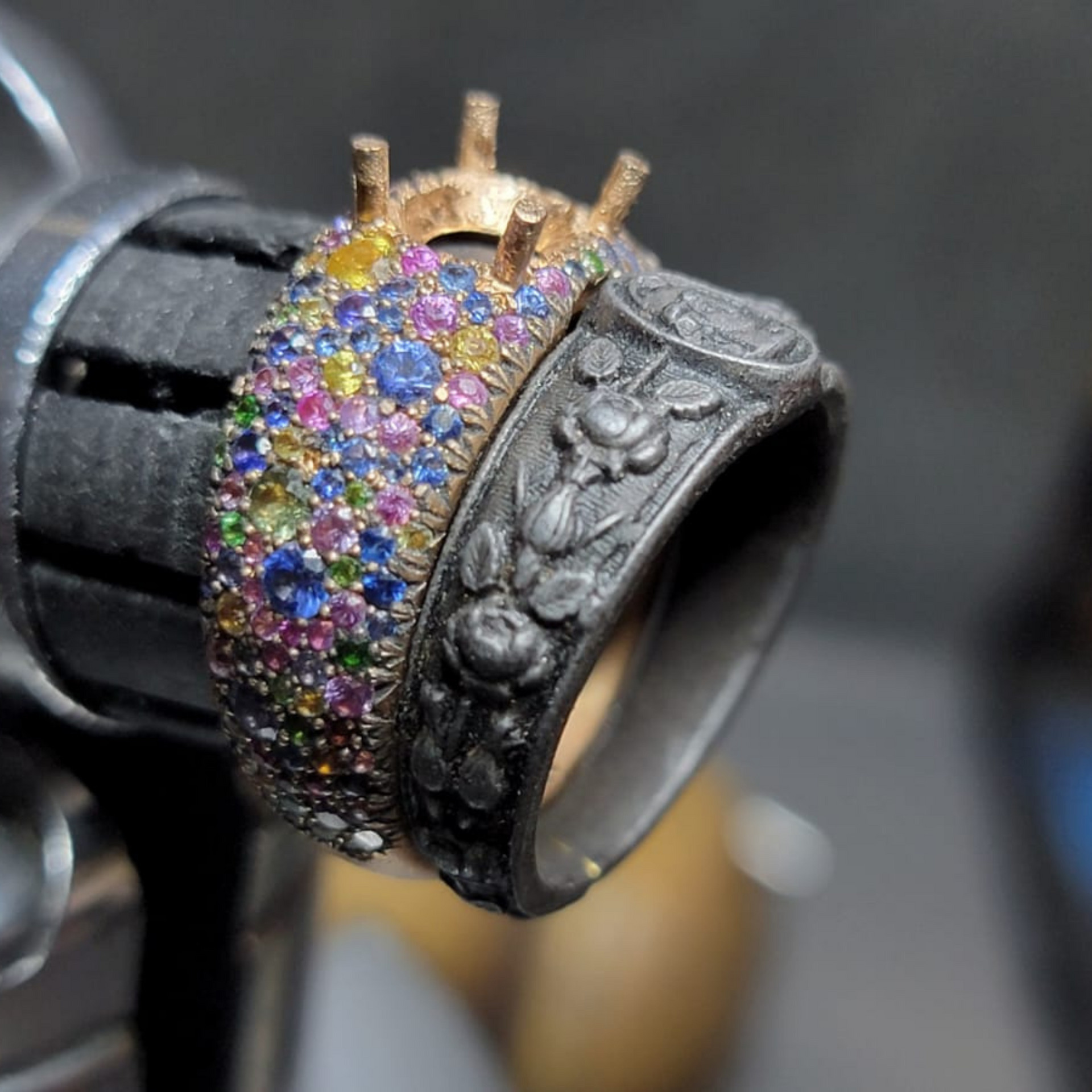 We hunt for true antique and vintage gems at auctions, antique fairs, and visits to other dealers. A handful of the stones and pieces we come across inspire us to create.